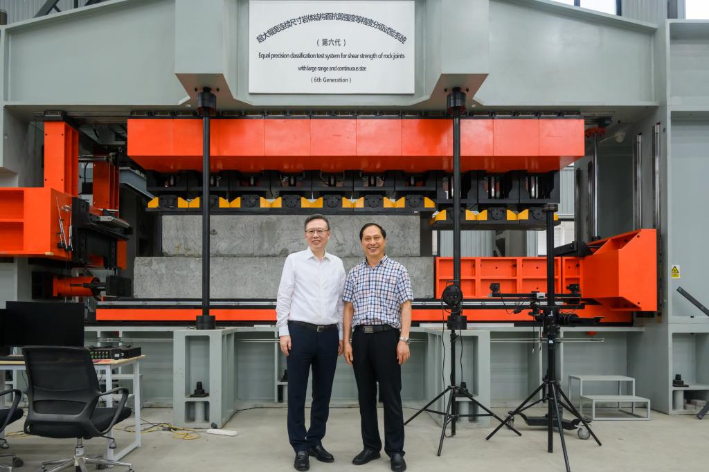 在杜时贵的陪同下,滕锦光一行还参观了借小议大实验室,详细了解超大宽幅连续尺寸岩体结构面抗剪强度等精度分级试验系统第一代至第六代的发展和改进。滕锦光认真聆听,针对实验室的实际应用等开展探讨。之后,滕锦光提出两校联合育人的构想,并针对两校后续的合作发展、人才培养等方面提出展望和期待。