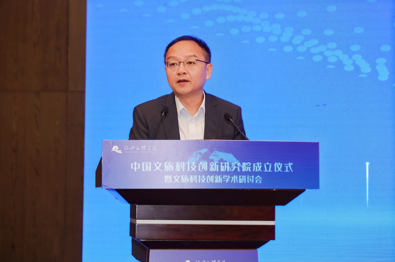 蒋斌致辞。他表示,将在长三角一体化发展战略指引下,依托中国文旅科技创新研究院,积极推进文旅行业创新、转型和推广工作,让文化在旅游的过程中开枝散叶。