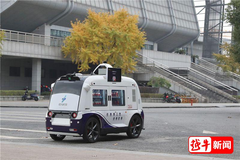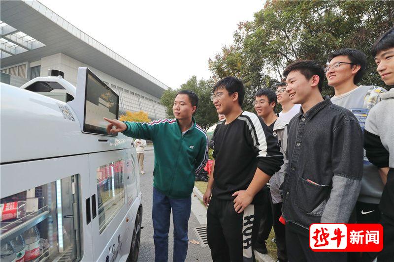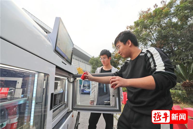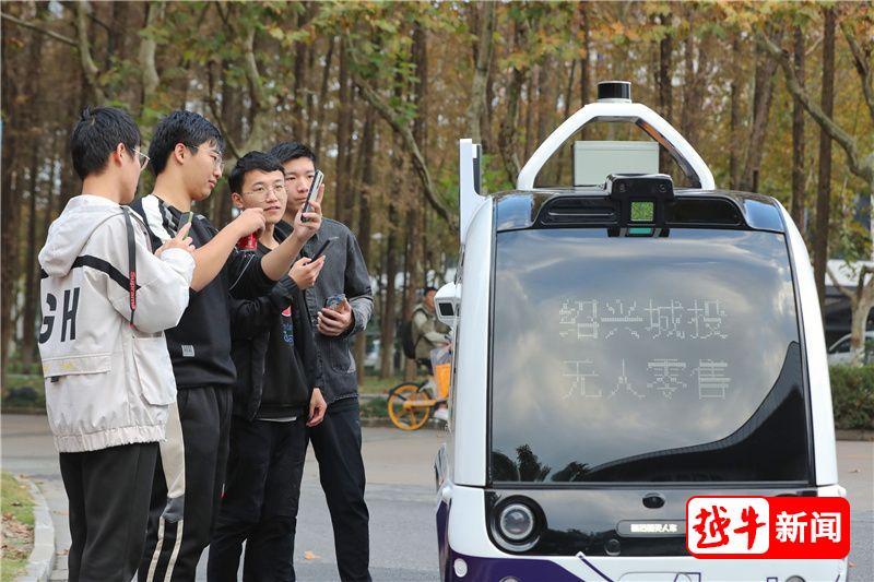 只见一辆无人驾驶的白色小车在校园内穿梭,学生可通过扫码自助购买车内的饮料,引来不少学生好奇尝鲜。