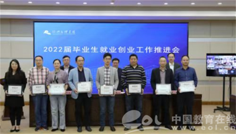 柳国庆宣读2021年度就业创业工作先进集体、先进个人表彰文件。校领导为2021年度就业创业工作先进集体颁奖。
