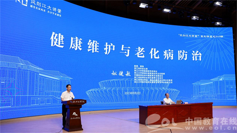 9月2日,浙江大学教授、博士生导师,浙江省科协主席,浙江大学胃肠病研究所所长,浙江大学医学部附属邵逸夫医院消化科主任医师,中国医师协会内镜医师分会副会长,浙江省医师协会消化医师分会会长,浙江省消化学会、消化内镜学会名誉主任委员,浙江大学医学院老化病防治研究中心名誉主任姒健敏教授做客风则江大讲堂,作题为《健康维护与老化病防治》的精彩讲座。