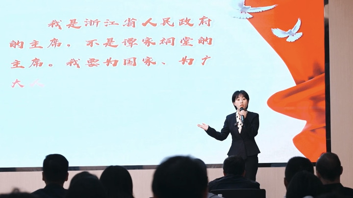 “有人说信仰看不见、摸不着。可是,当我瞻仰位于云居山顶的浙江革命烈士纪念馆的时候,却真切感受到了信仰的力量。”浙江省委党史和文献研究室四级调研员常晓莉深情讲述了革命先烈们的英勇事迹,激励着现场听众坚定信念,为实现中国梦而努力奋斗。