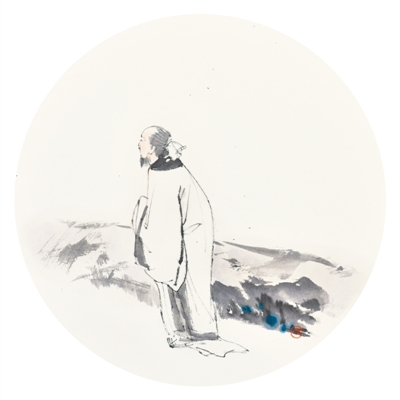 陈浩的中国画作品幅面往往不大,易于起讫。人物画每取老子出关、米颠拜石、临渊羡鱼等历史人物与释迦、观音、达摩等道释人物,感叹“逝者如斯夫”的孔夫子,踏雪寻梅、结社雅集的高士,淡然脱俗、飘逸出尘的仕女,也时时出现在他的笔下。山水画往往营造江天辽阔、空山无人、寒林寂寞、萧瑟边关的意境,以此构筑内心深处的桃花源。花鸟小品每每一枝半叶,孤鸟独立。较之多数画家,陈浩有着更为丰富的人生历练与文化阅历,对人生之多艰、命运之多变有着更深刻的体悟,于是在其画面中更多地传达出萧瑟荒凉、静谧安宁之感,引发读者的思考与感悟。在笔墨上,陈浩运笔酣畅,墨渖淋漓,常常大片淡墨渲染以造朦胧氤氲之境,简笔勾勒以生发物象。总体而言,陈浩的中国画小品追求品位的纯正,注重情感的表达,其作品画境求意趣,画面求生趣,笔墨求机趣。于其油画创作外另辟新境,另拓艺境。