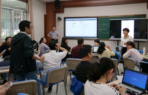 培训中,首席培训专家张胜全教授从慕课、微课及SPOC的概念出发,提出了微课在互联网时代学习中的重要作用,通过学习通的教学体验激发了参训教师的学习兴趣。全国微课大赛获奖者曾万勇和覃晶晶分别讲解了如何用工具和软件进行微课制作,并给参训老师布置了“家庭作业”。在专家的指导下参训教师进一步完善微课作品,并现场展示交流,经过专家点评,参训教师对微课制作有了进一步的认识。专家从微课设计、SPOC建课与翻转教学几个方面,为参训教师分享了利用SPOC进行翻转教学的感受和收获。