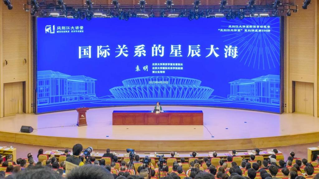 袁明教授应邀作风则江大讲堂新馆首场报告。她以《国际关系的星辰大海》为主题,带来一堂启迪心智、精彩绝伦的国际关系课。